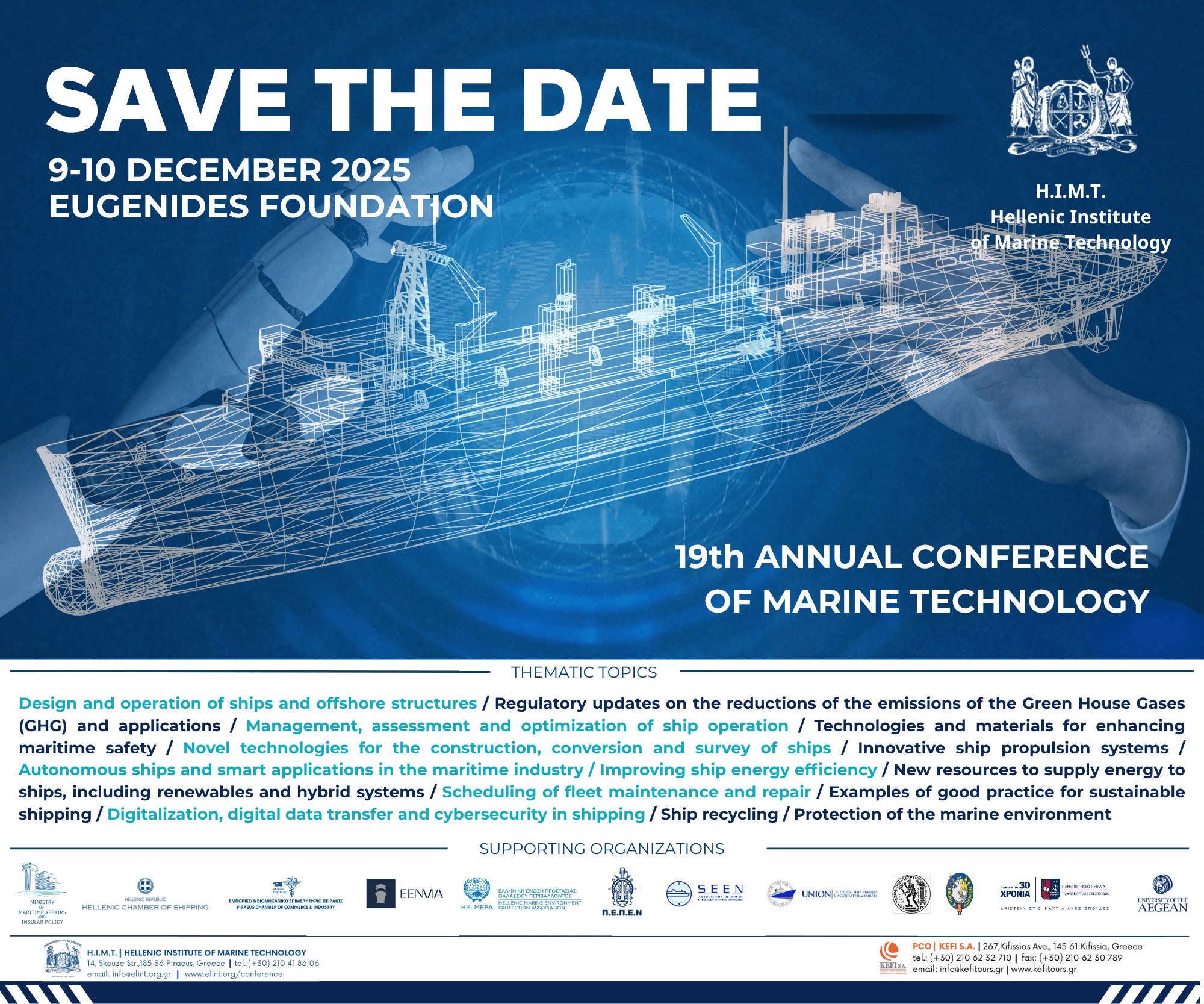 Το Ελληνικό Ινστιτούτο Ναυτικής Τεχνολογίας (ΕΛ.Ι.Ν.Τ.) διοργάνωσε με ιδιαίτερη επιτυχία το 19ο Ετήσιο Συνέδριο Ναυτικής Τεχνολογίας, το οποίο πραγματοποιήθηκε στις 9 και 10 Δεκεμβρίου 2025…